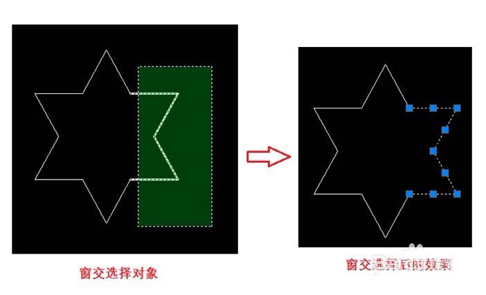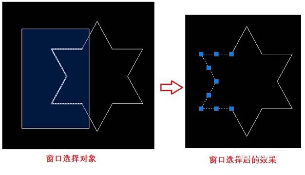 窗選對象是通過拖動生成一個矩形區域(長按鼠標左鍵則生成套索區域),將區域內的對象加以選擇。根據拖動方向的不同,窗選又分為窗口選擇和窗交選擇。