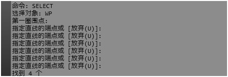 在命令行輸入“SELECT”并按【Enter】鍵,再輸入WP并按【Enter】鍵,即可進入圈圍選擇模式。