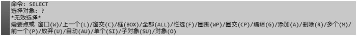 3、命令行中提供了各種選擇方式。執行SELECT命令后,在命令行輸入對應的字母并按【Enter】鍵,即可使用該選擇方式。