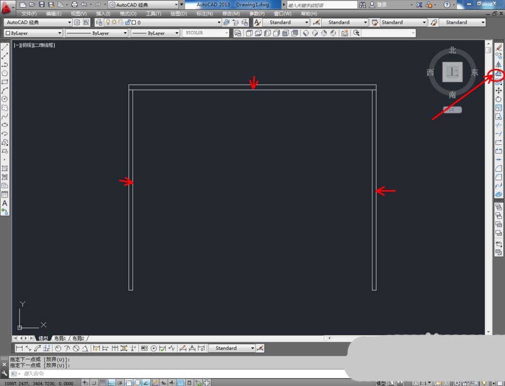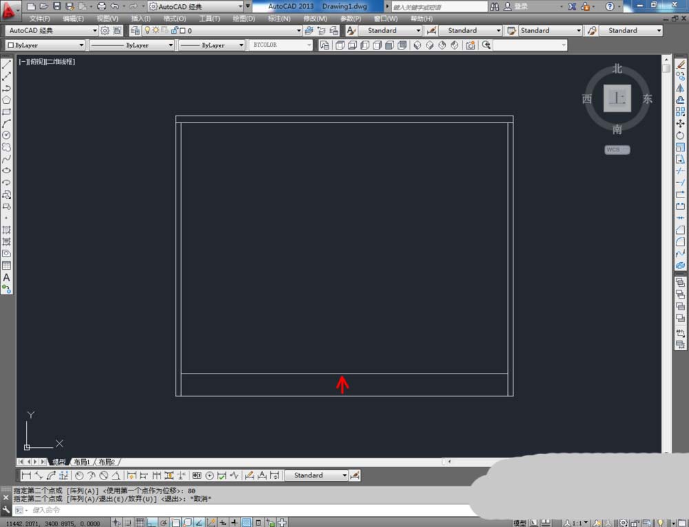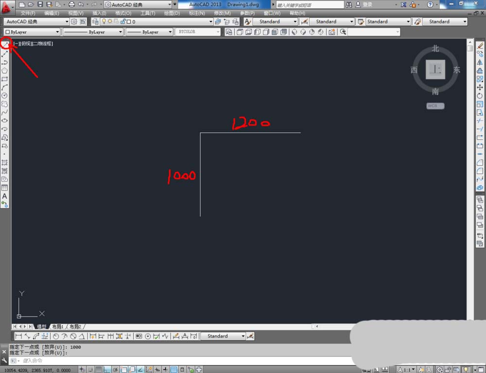 1、打開AutoCAD2013軟件,點(diǎn)擊【直線工具】,在作圖區(qū)域繪制出1200mm和1000mm兩條線段。點(diǎn)擊右邊工具欄中的【偏移】命令,分別對各個(gè)邊進(jìn)行偏移操作(柜頂板偏移:25)。完成后,點(diǎn)擊【直線工具】完成對鞋柜的柜體劃分(如圖所示);