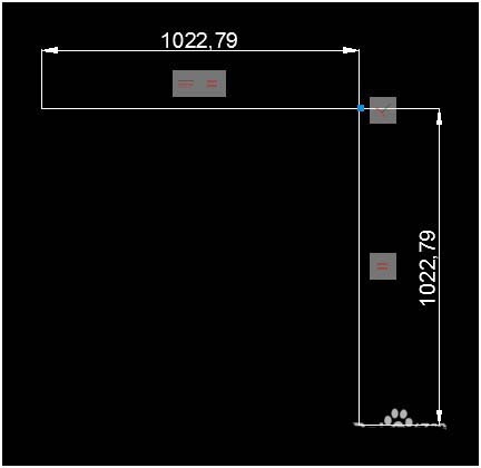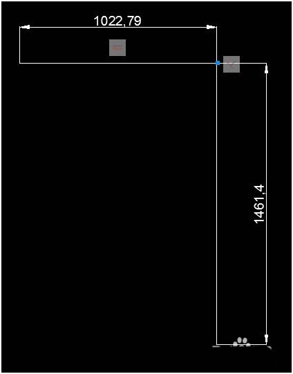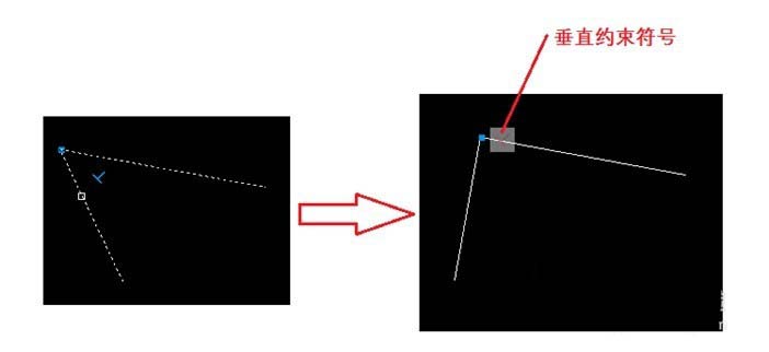 2、鼠標左鍵選擇剛才畫的那兩條線并單擊,發現這兩條線在交點那個地方相互垂直,并且顯示“垂直約束的符號”。