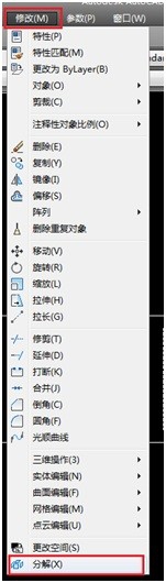3、關閉工具選項板,在“修改”工具欄中單擊“分解”按鈕,將視圖中六角頭螺栓進行打散操作,刪除尺寸標注。