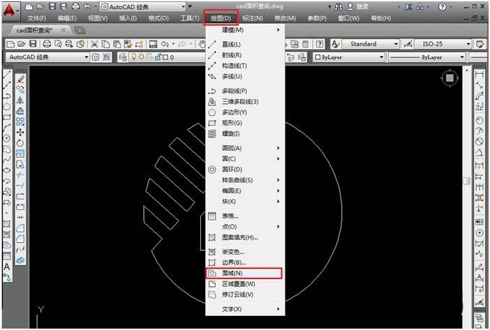 3、點(diǎn)擊“繪圖”下拉菜單,點(diǎn)擊面域;