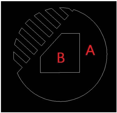 1、創(chuàng)建文件“CAD面積查詢”,繪制圖形如下,圖形由白色區(qū)域B和黃色區(qū)域A組成,需要求的是黃色區(qū)域A的面積。
