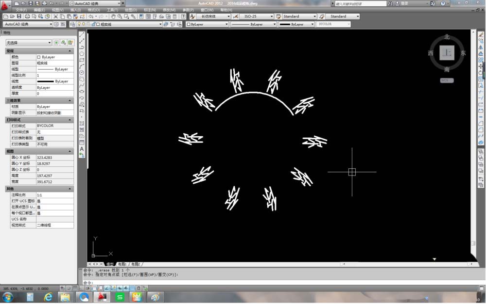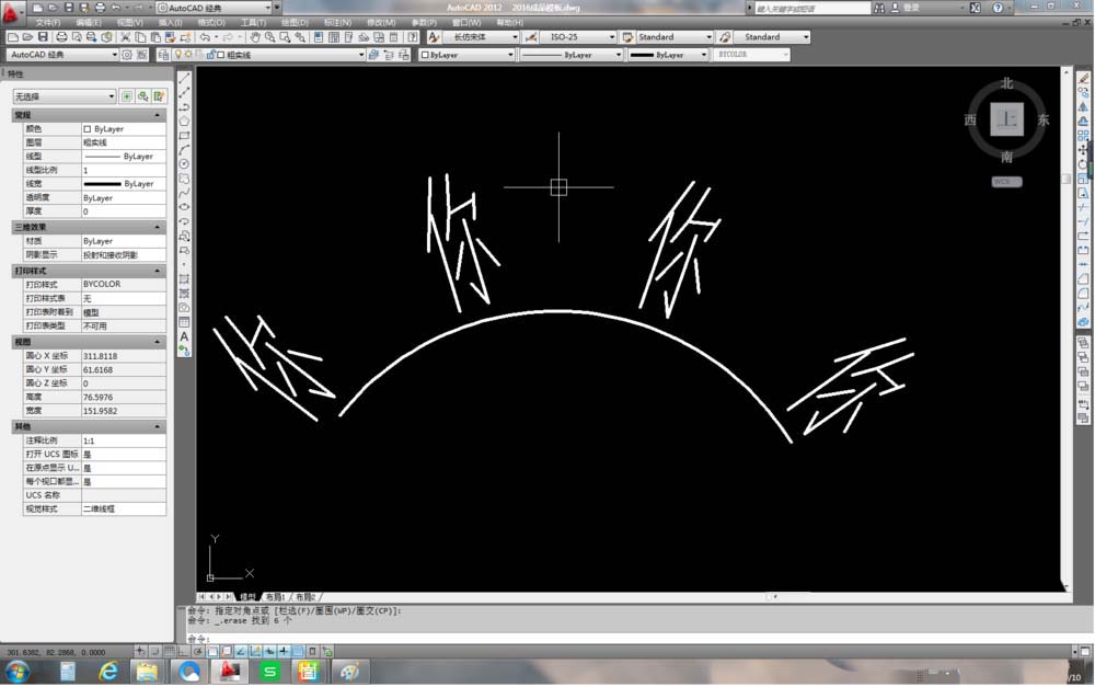 8、刪除多余的文字,只留下圓弧上的四個文字。說明一下,如果是2012版本的軟件,那么極軸陣列之后默認的是關聯的,如果想刪除多余的文字,還需要用“x”功能,將它們“打散”。