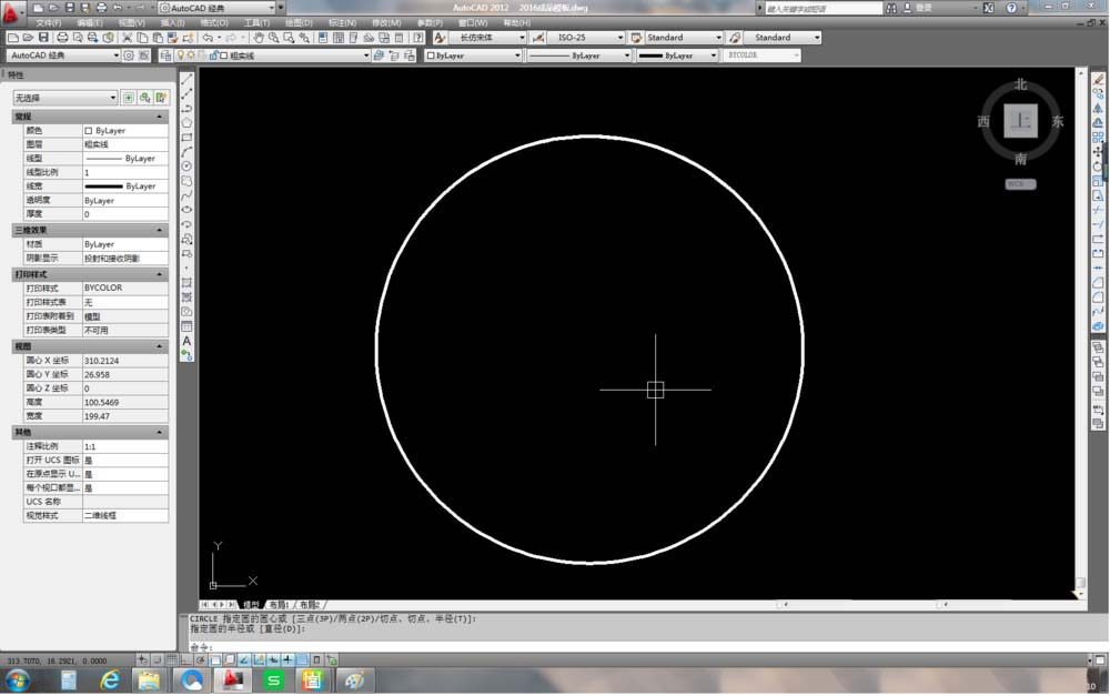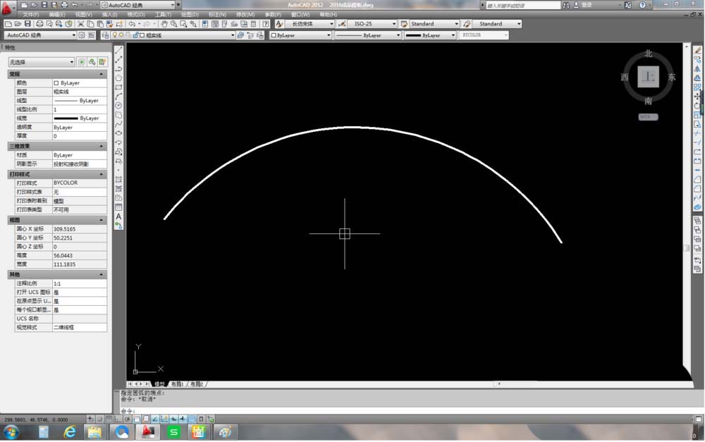 3、畫一個輔助圓。這個輔助圓的圓心與之前的圓弧圓心重合,半徑與圓弧的半徑相同,效果如下圖所示。