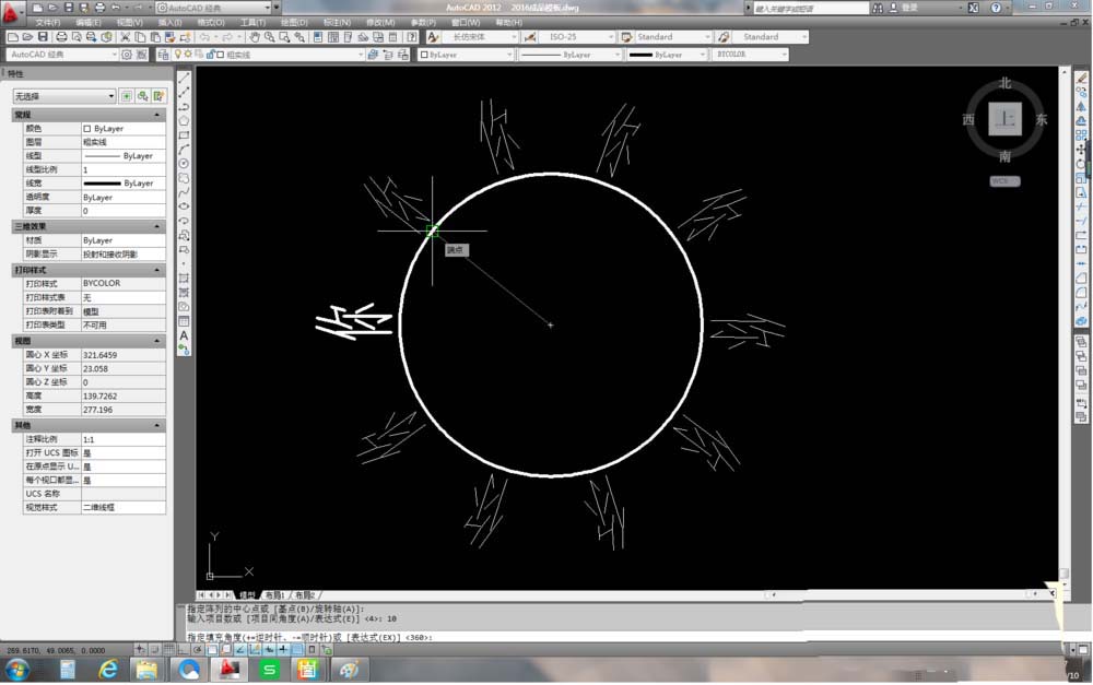 6、將“你”進行環形陣列(筆者用的AutoCAD2012版本又叫“極軸”)。陣列的時候數量任選,筆者選擇的是10個,角度可以如下圖所示,選擇到圓弧的左端點。