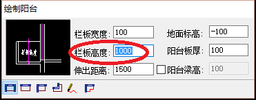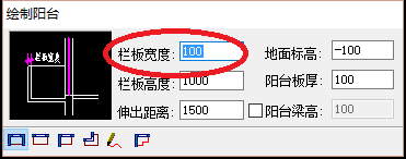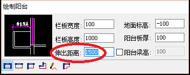 4、在“繪制陽臺”的編輯頁面,依次輸入自己需要的數據,如下圖所示