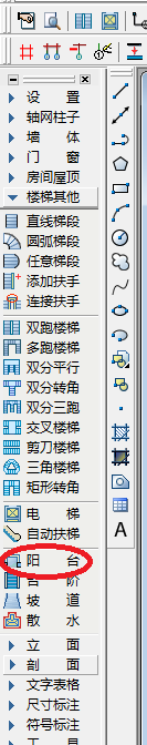 2、點擊“樓梯其他”,然后點擊二次目錄“陽臺”,如下圖所示