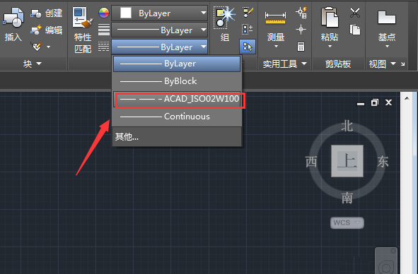 8、點擊修剪選項我們將多余的線就行修剪,然后選擇圓弧再在線型里找到虛線選項,如圖所示: