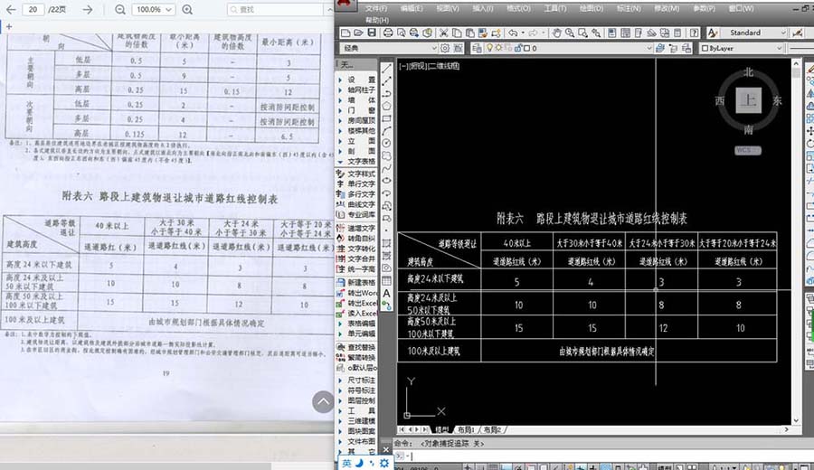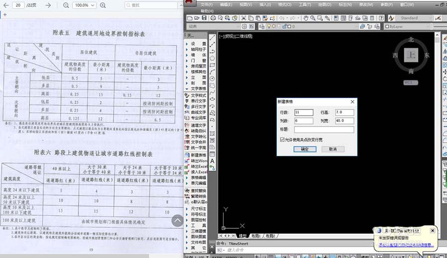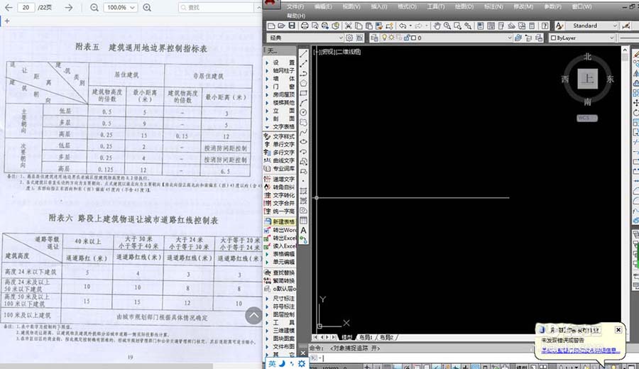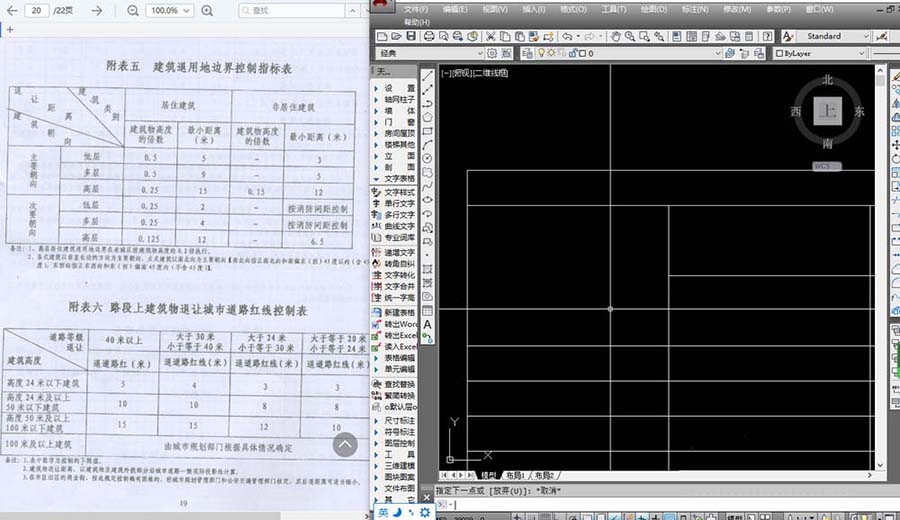 1、首先,我們開啟cad進入到繪圖工作區,為了提高工作效率,我們可以將參考表格放置到一邊,從而一邊參考一邊繪制。