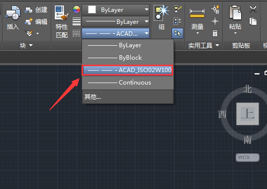 4、選擇埋地裝置和連接線我們找到線型選項,在線型內選擇虛線,如圖所示: