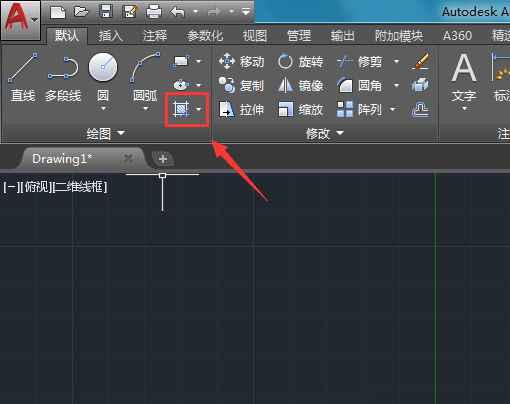 1、我們先將CAD打開并在打開的操作界面內找到直線命令,如圖所示: