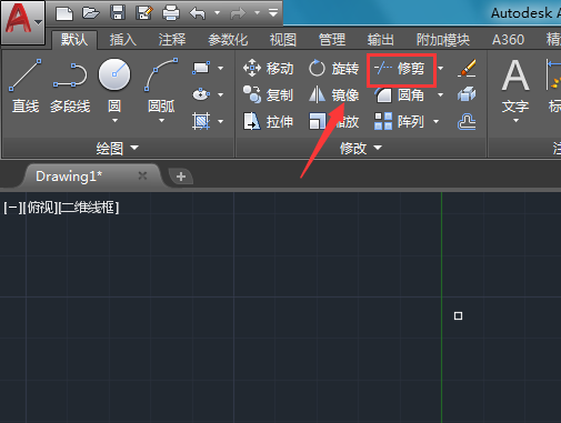 7、繪制個各種圖形之后再在修改里找到修剪選項,如圖所示: