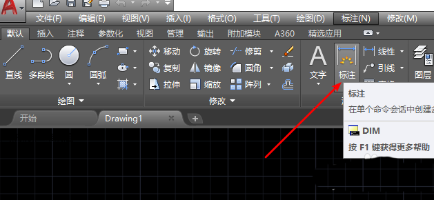 2、當(dāng)然,我們也可以通過(guò)命令行的方式打開(kāi),具體快捷命令為DIM。