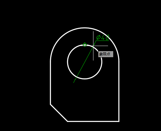 3、比如我們要標(biāo)注圓的半徑或者直徑,只需要選中智能標(biāo)注以后鼠標(biāo)放置在圓上,然后自動(dòng)出現(xiàn)半徑或者直徑的標(biāo)注,鼠標(biāo)向圓內(nèi)側(cè)移動(dòng)則會(huì)出現(xiàn)半徑標(biāo)注,向外側(cè)則會(huì)出現(xiàn)直徑標(biāo)注,然后點(diǎn)擊左鍵。