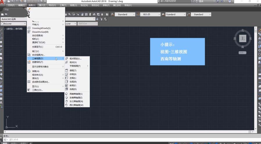 2、在“三維視圖”中選擇“西南等軸測(cè)”