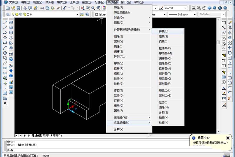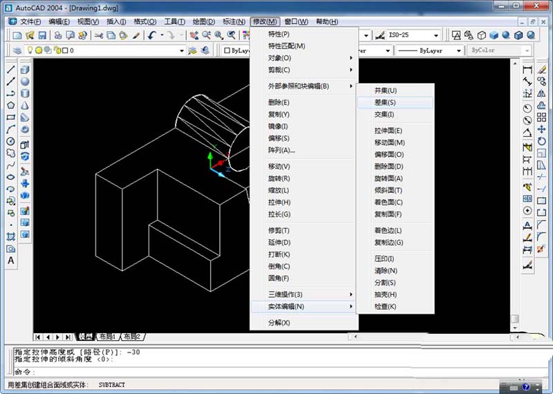 5、將面域拉伸成實體,再利用三維編輯的并集,將兩個實體合并為一個整體