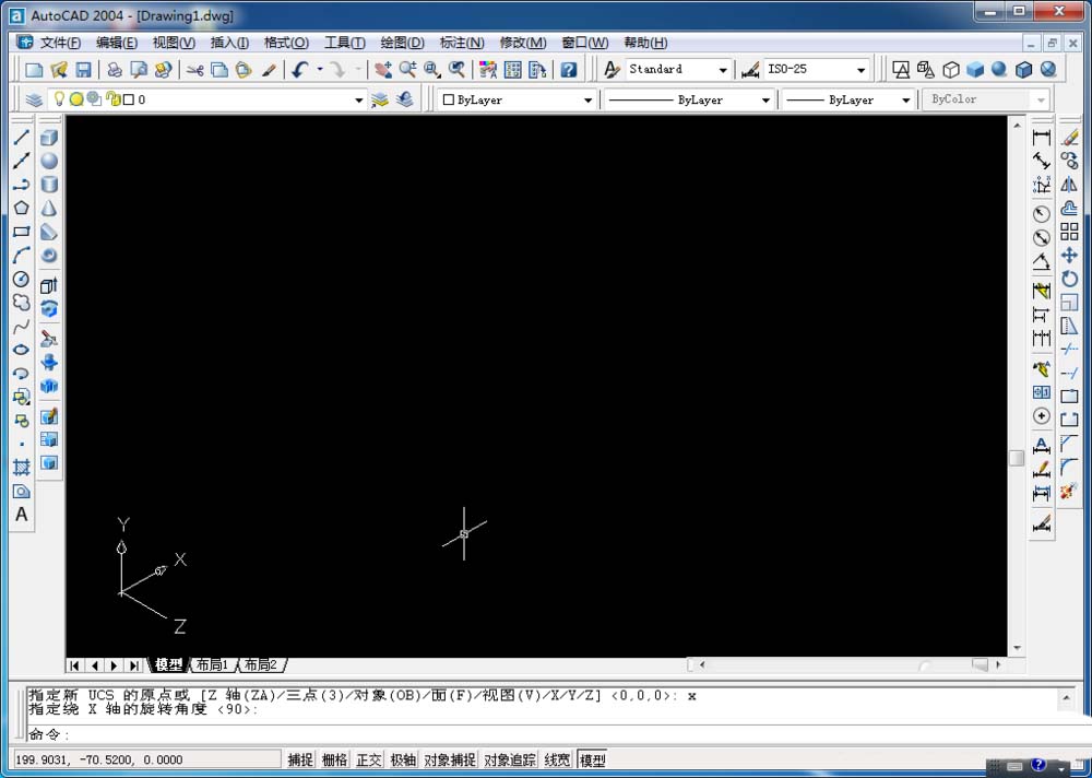 1、打開AUTOCAD2004軟件,并新建圖形,將視圖設置為西南等軸測,再利用UCS命令,將視圖沿Y軸旋轉90度