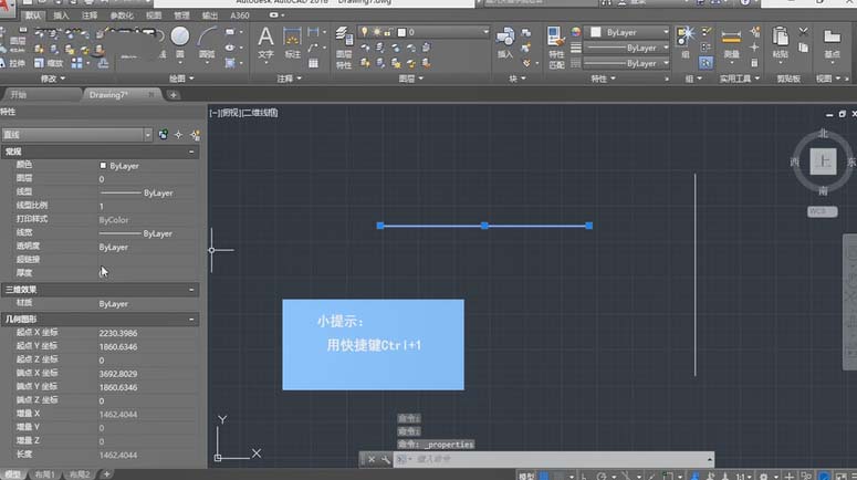 2、用快捷鍵ctrl+1可看線段屬性,點(diǎn)擊右側(cè)全導(dǎo)航控制盤。