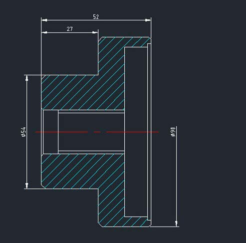 1、打開(kāi)一個(gè)示例的圖紙文檔,準(zhǔn)備將其中的尺寸“90”(圖中紅框),只顯示下半段的尺寸線及尺寸界線
