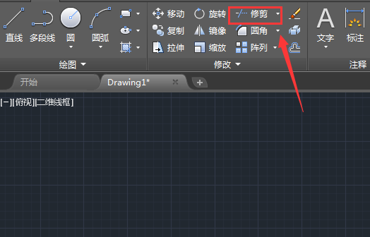 6、繪制好之后,我們在菜單里找到修剪命令,如圖所示: