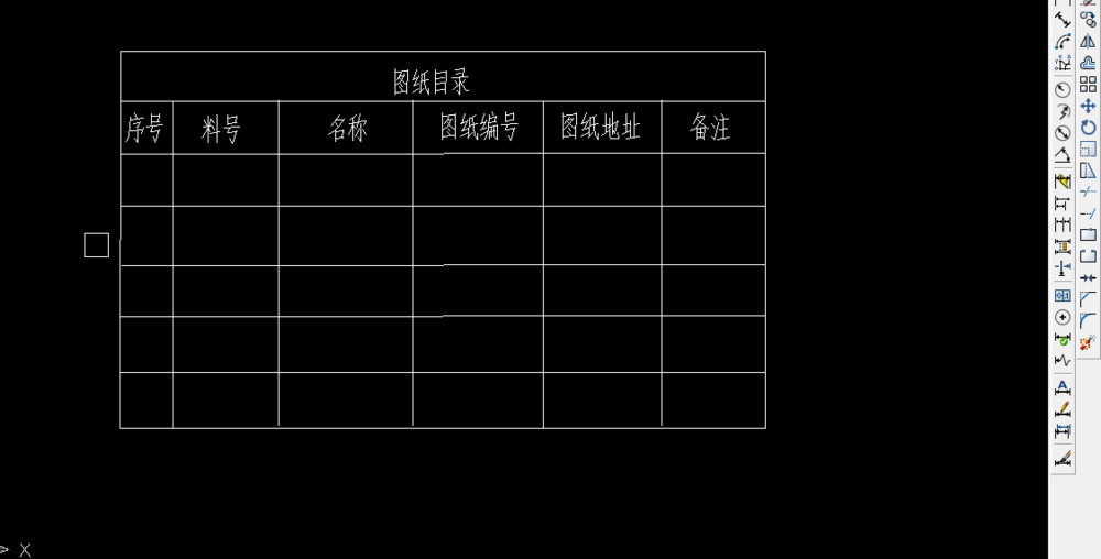 4、表頭一行畫好之后,我們使用文字工具,輸入“圖紙目錄”作為表頭名稱,調(diào)整好字體的大小與位置,如下圖所示。