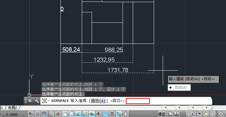 6、接著輸入想要的距離值,按回車。不輸入就會自動默認為0距離(會重疊)。
