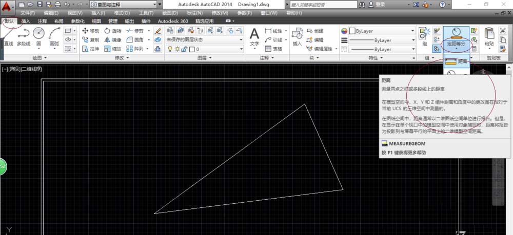 1、啟動AutoCAD 2014輔助設計軟件,如圖所示。按照設計數據創建圖形文件,本例要求使用距離查詢功能測量兩點之間的長度。