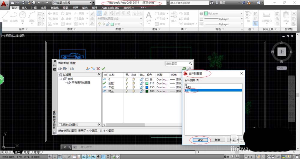 4、如圖所示,彈出"合并到圖層"對話框。選擇"目標圖層→車位"圖層,設置完成點擊"確定"按鈕。