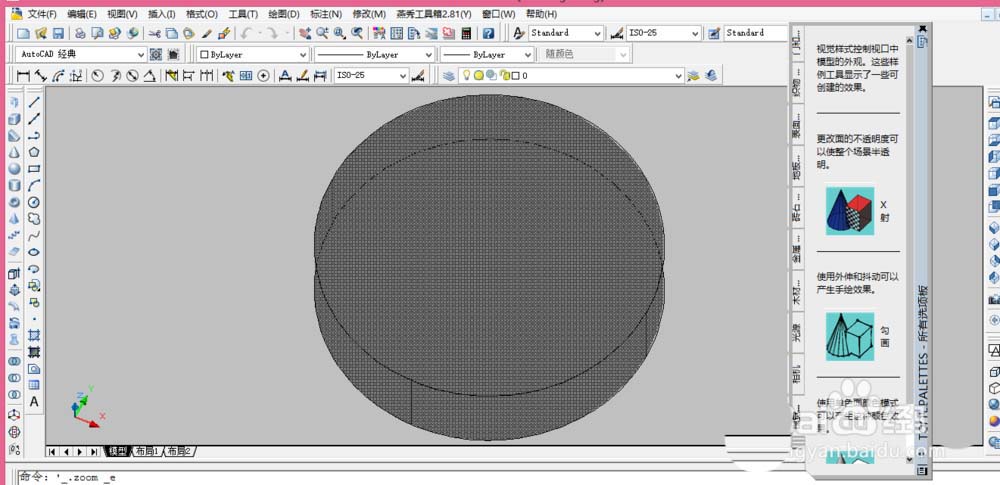 7、最好一個視覺樣式的名字叫做灰色,顧名思義也就是把圖形的顯示顏色換成了灰色,如圖