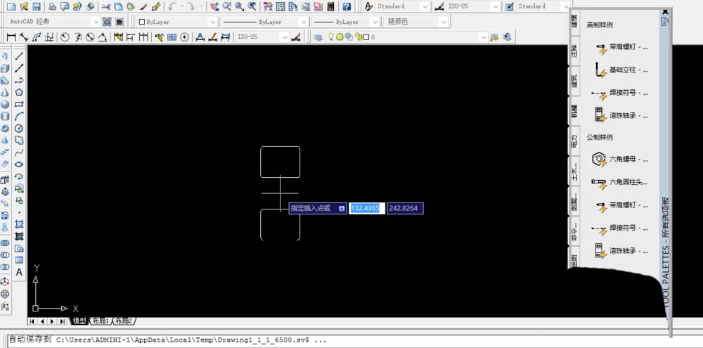 5、我們選擇了滾珠軸承以后,就可以在空白處選擇插入點,然后點擊鼠標左鍵,這樣就可以出現滾珠軸承的圖形了,如圖
