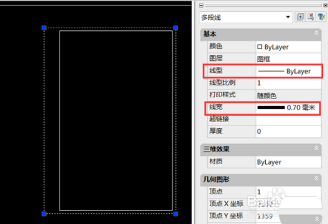 5、然后,我們選定所繪制的線框邊框,進入到設置屬性當中,如圖所示我們可以把邊框的線性等屬性設置的更為明顯一點,以便效果突出。