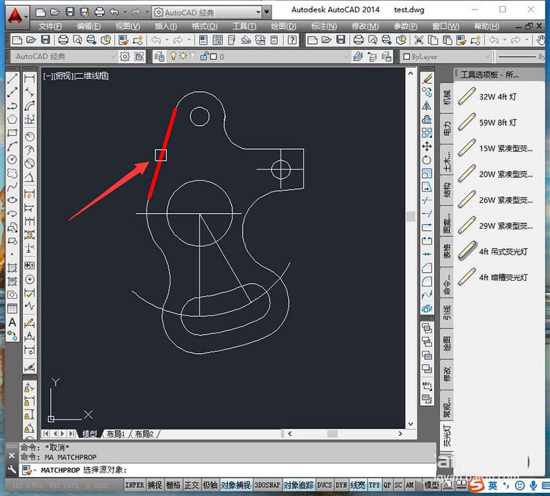 5、你的鼠標后會出現(xiàn)一個刷子,之后你只需要點擊你要操作的線條即可完成特性復制。