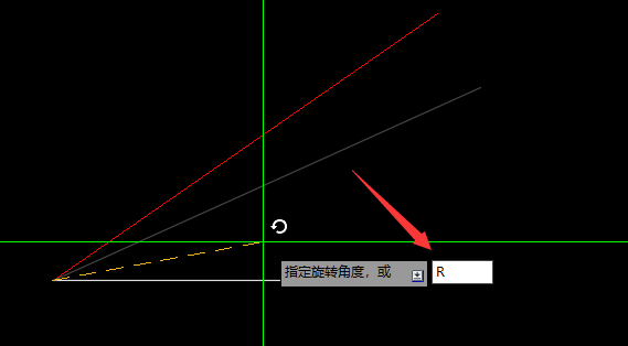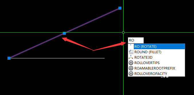 2、選中紅線,輸入旋轉命令“ro”,回車。
