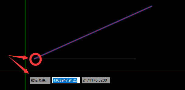 6、指定旋轉對象的第二個點,該直線上任一點,中點、端點都行。