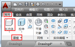 1、首先運(yùn)行打開(kāi)AutoCAD2014的軟件,然后調(diào)整好視角,并找到【常用】》【建模】》【長(zhǎng)方體】選項(xiàng)。