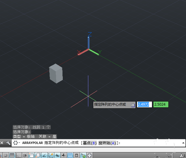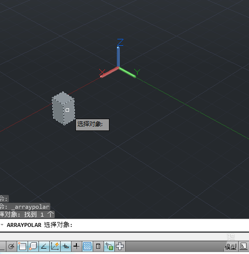 4、點(diǎn)擊鼠標(biāo)左鍵在繪圖區(qū)選中要進(jìn)行環(huán)形陣列的長(zhǎng)方體后,按回車(chē)。