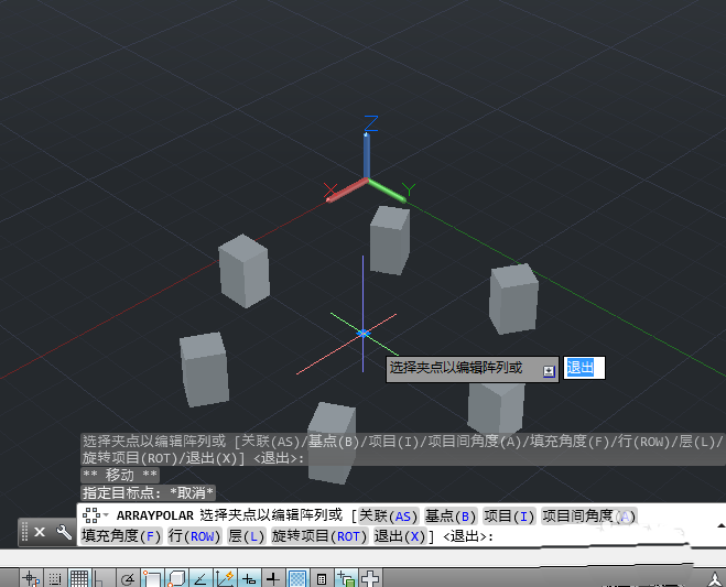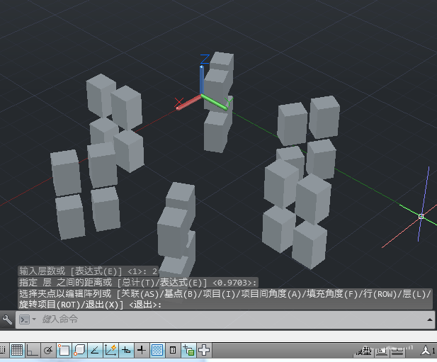 7、然后根據(jù)信息提示輸入相關(guān)行數(shù)、列數(shù)、層數(shù)以及各間距值,按回車(chē)即可完成三維陣列。