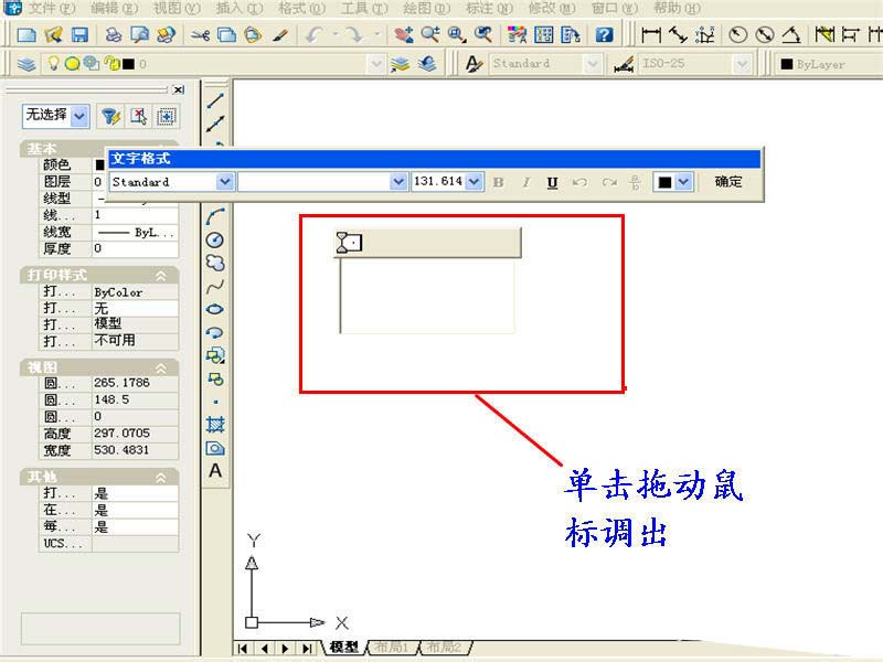 3、打開文字輸入對話框。單擊字母A之后,如果沒有發(fā)生什么變化。這個時候不要著急,還需要一步:在cad繪圖界面的空白處,按住左鍵,選中一個起始點,然后拖動鼠標,這時候就會彈出一個輸入對話框了。