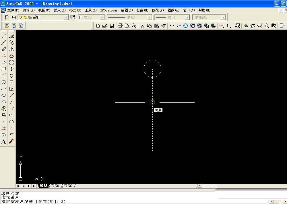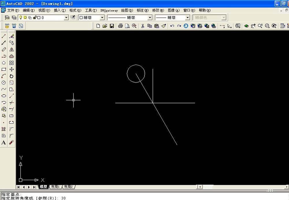 5、這時候提示指定旋轉角度,將其角度設置為30度,在命令行中輸入30,按回車鍵確定