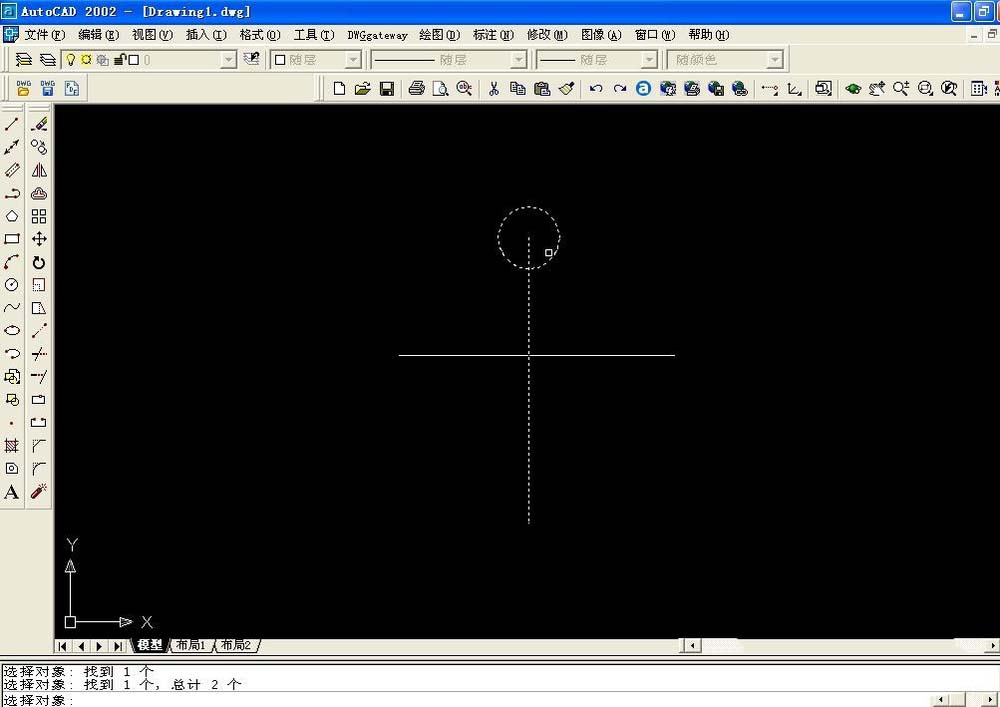 3、選中圓形和縱向的直線,并按回車鍵確認