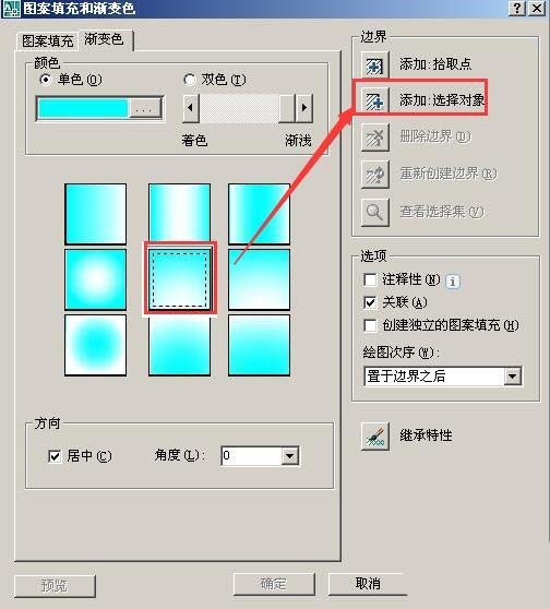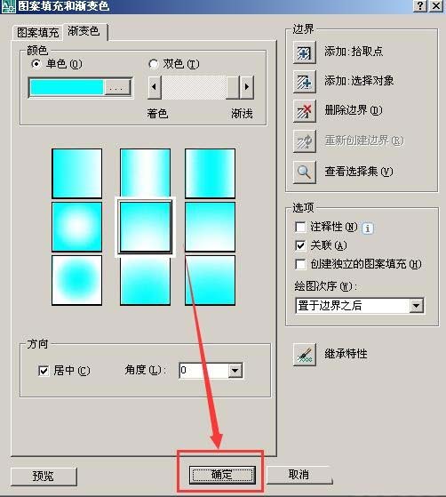 CAD2007怎么填充漸變色? cad圖案填充顏色的教程