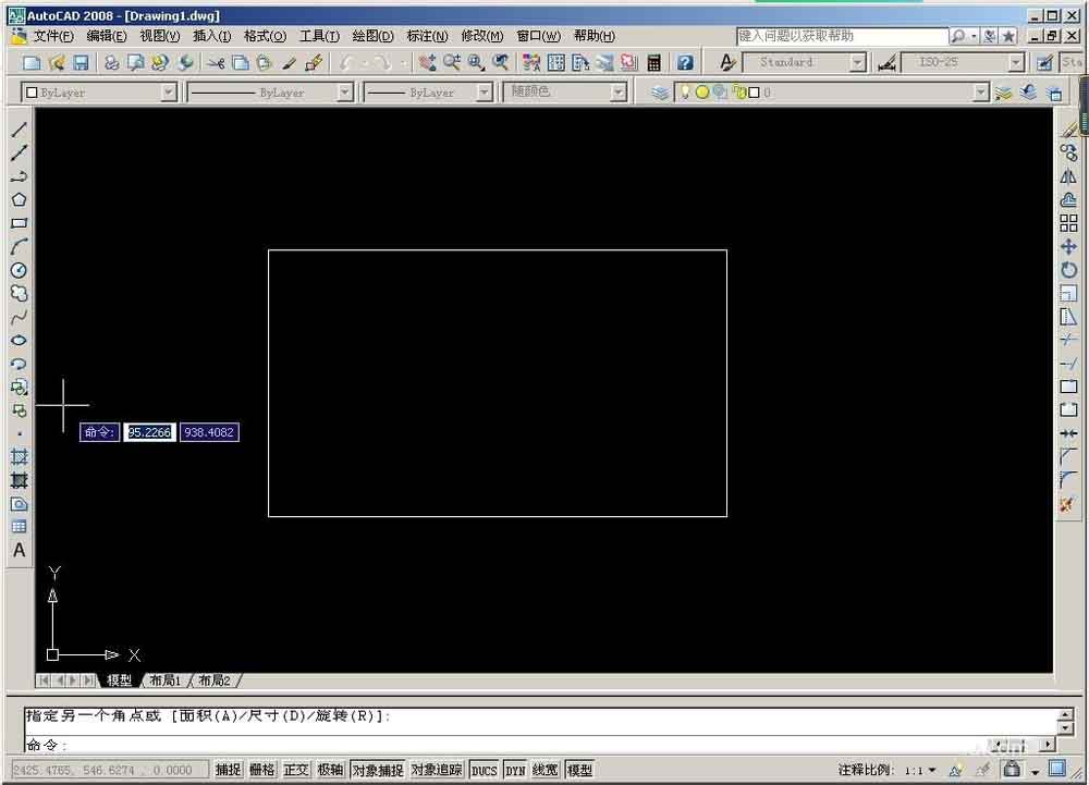 7、鼠標變成小白塊時,點距形,再敲空格鍵