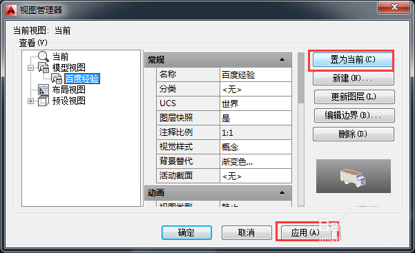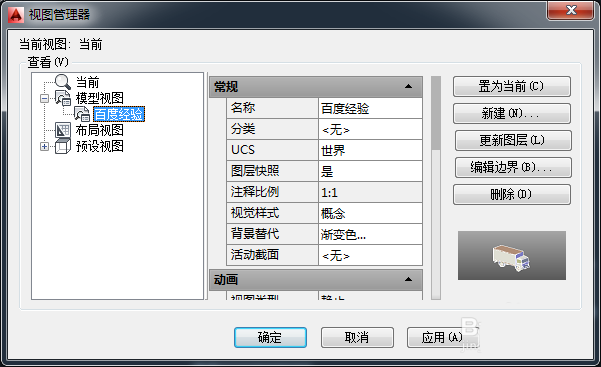 5、設置好后單擊【確定】按鈕返回上一層對話框,單擊【確定】按鈕返回【視圖管理器】對話框,如圖所示。