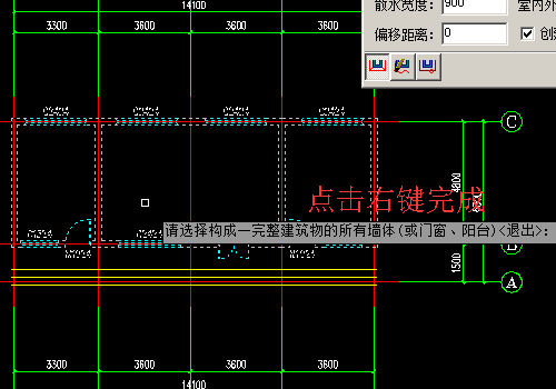 5、設置好以后我們就可以繪制散水了,由于我們是使用的自動生成散水,我們可在動態輸入中看到,請選擇構成一建筑物的所有墻體。我們框選全部的墻體。