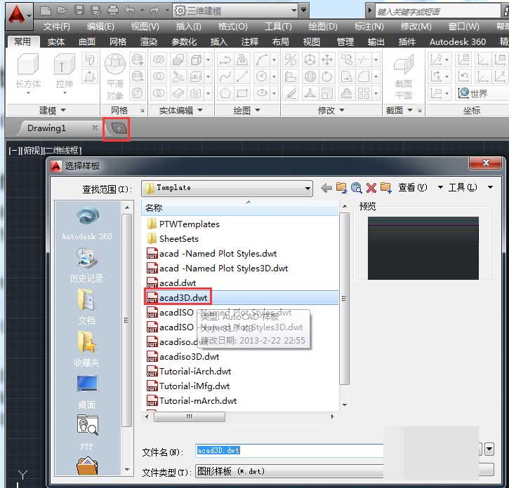 1、打開AutoCAD2014軟件,在【選擇樣板】對(duì)話框中選擇acad3D.dwt文件打開。