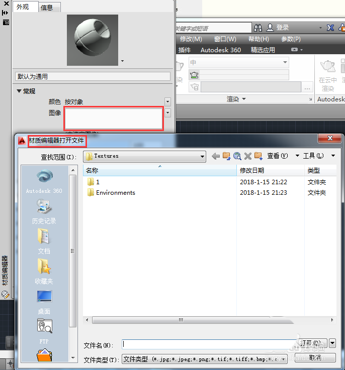 3、單擊【圖像】文本框,在【材質編輯器打開文件】對話框中,選擇需要的材質圖選項,單擊【打開】按鈕,如圖。