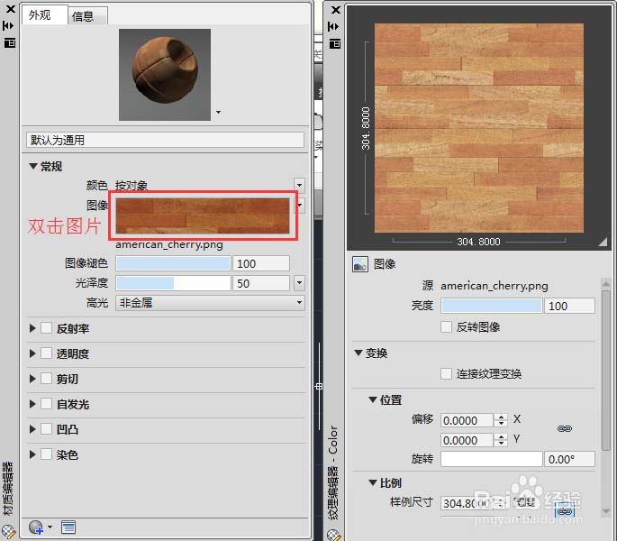 4、在【材質編輯器】選項板中,雙擊添加的圖像,在【紋理編輯器-Color】選項板中,用戶可對材質的顯示比例、位置等選項進行設置,如圖所示。