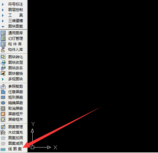 2、當(dāng)我們需要插入復(fù)雜圖案時(shí),先單擊左側(cè)工具條——圖塊圖案——線圖案。